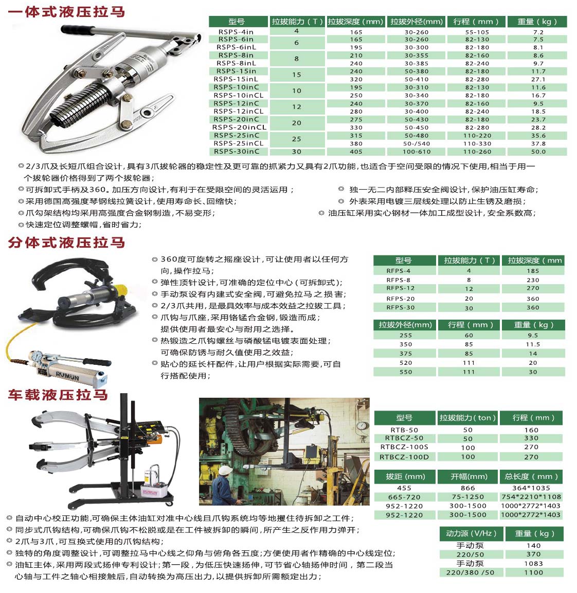 RVMUN RTB-200系列200T車載式液壓拉馬液壓拉拔器技術(shù)特點及技術(shù)參數(shù):
